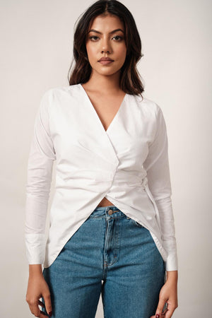 Long Sleeve Wrap Top In White