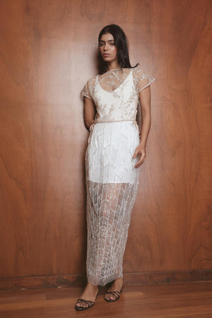 Beaded Top In Nude