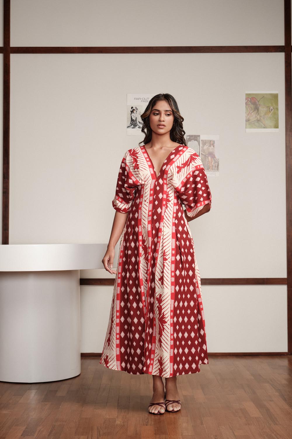 Our signature Kimono Midi, one of our most timeless styles, returns in our new print. Cut in a relaxed, flowy silhouette, it features a flattering V-neckline and soft, voluminous sleeves that create an easy, elevated look. A true Shay Int classic perfect for dressing up or keeping it casual.