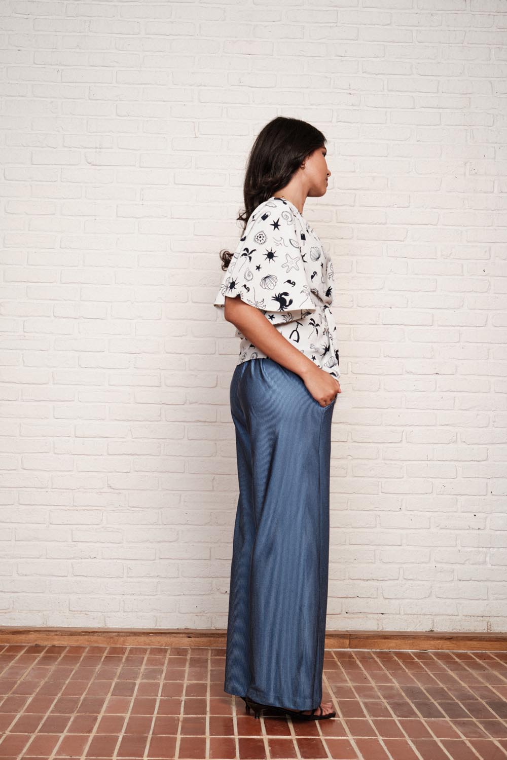 Your new wardrobe favourite. This top features a flattering front twist detail that cinches the waist and adds dimension to the silhouette. Designed with a relaxed fit, it has wide, flowy sleeves and a deep V-neckline. Style it with tailored pants or denim for a refined outfit.